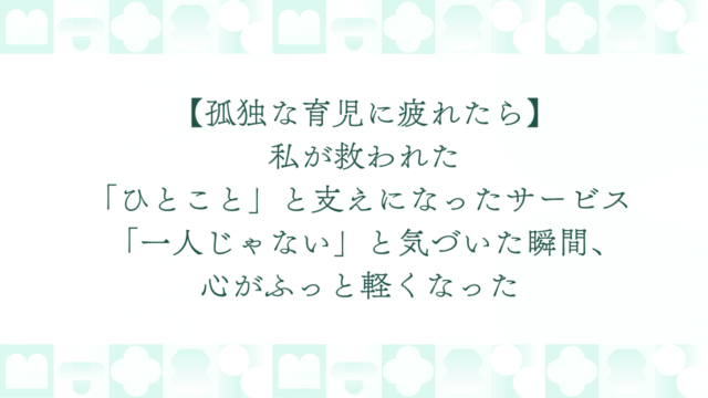 【孤独な育児に疲れたら】私が救われた「ひとこと」と支えになったサービス ― 「一人じゃない」と気づいた瞬間、心がふっと軽くなった ―