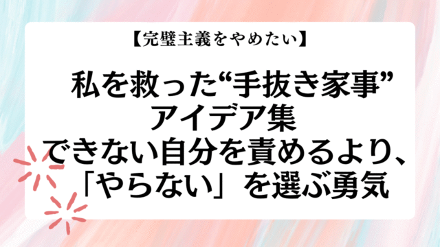 【完璧主義をやめたい】私を救った“手抜き家事”アイデア集 ― できない自分を責めるより、「やらない」を選ぶ勇気 ―